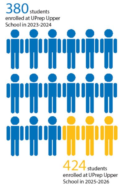 With 425 students in the upper school, and only 35 minutes to eat, it is a rush to get food before class. Yet UPrep only appears to keep growing. The admissions office reports that upper school student enrollment has increased from 380 to 424 students from 2023 to 2025. This is why cutting the line is second nature to sophomore Anya Arnold.