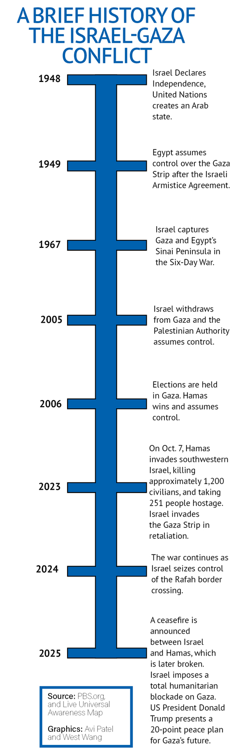 Sophomore Rian Sinha doesn’t have personal connections to the conflict and isn’t Jewish or Muslim, but is adamant that more discussions are needed about the war in order to foster empathy and understanding across different perspectives, and keep the community informed.